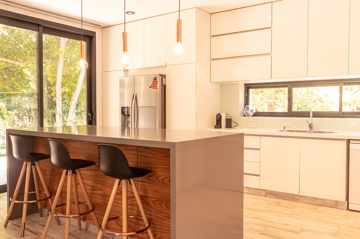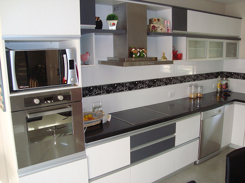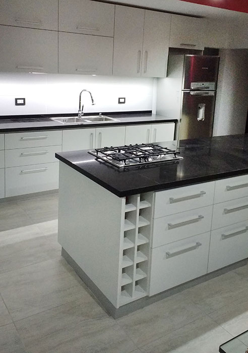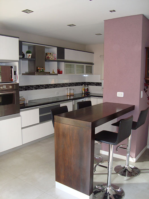 En base a medidas existentes de un replanteo en obra o plano se trabajan con medidas reales respetando ejes de ventanas, ejes de piletas y llaves de paso. Nuestros muebles están fabricados íntegramente en melamina tanto cuerpo como puertas. También realizamos muebles en madera estilo country que pueden ser laqueados con poliretano de optima dureza y terminación. Opciones de diseño, con cajones de diversas dimensiones y composición, tipo olleros, alacenas con aperturas horizontales con pistones neumáticos y/o verticales, puertas de aluminio, estantes regulables, iluminación LED bajo alacenas, columnas y despenseros que optimizan los espacios. Los accesorios y herrajes con acabados satinados o cromados a elección, bisagras con sistemas de cierre suave en alacenas y cajones, ordenadores, cubierteros, especieros, canastos y cercos, pensados para los diferentes elementos de guardado.