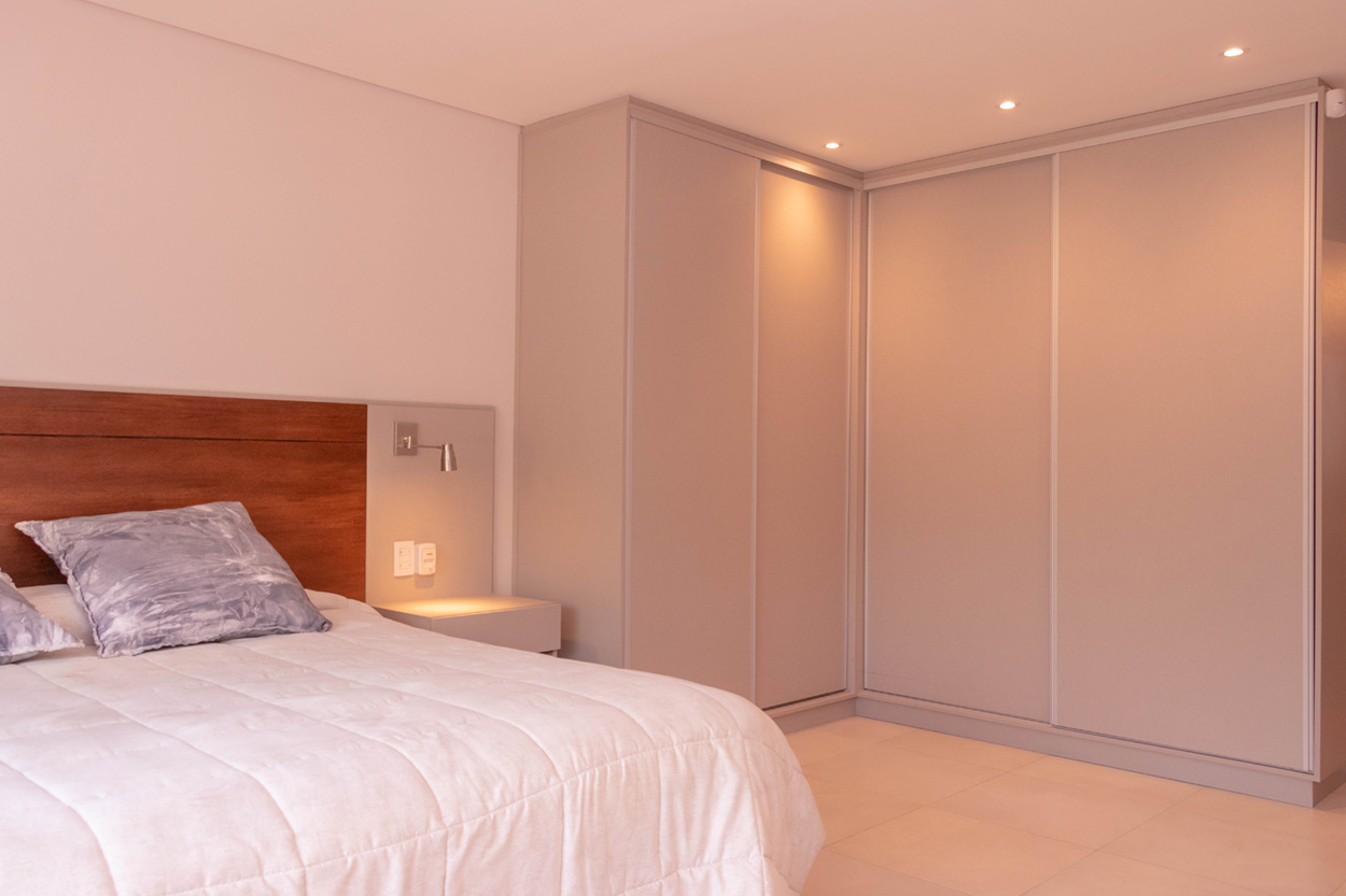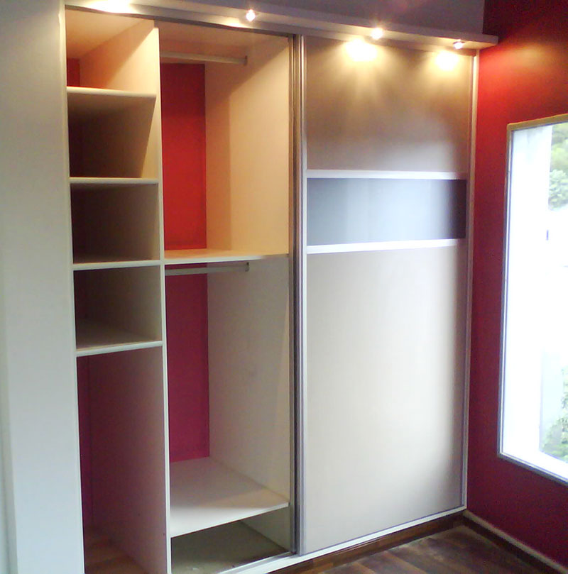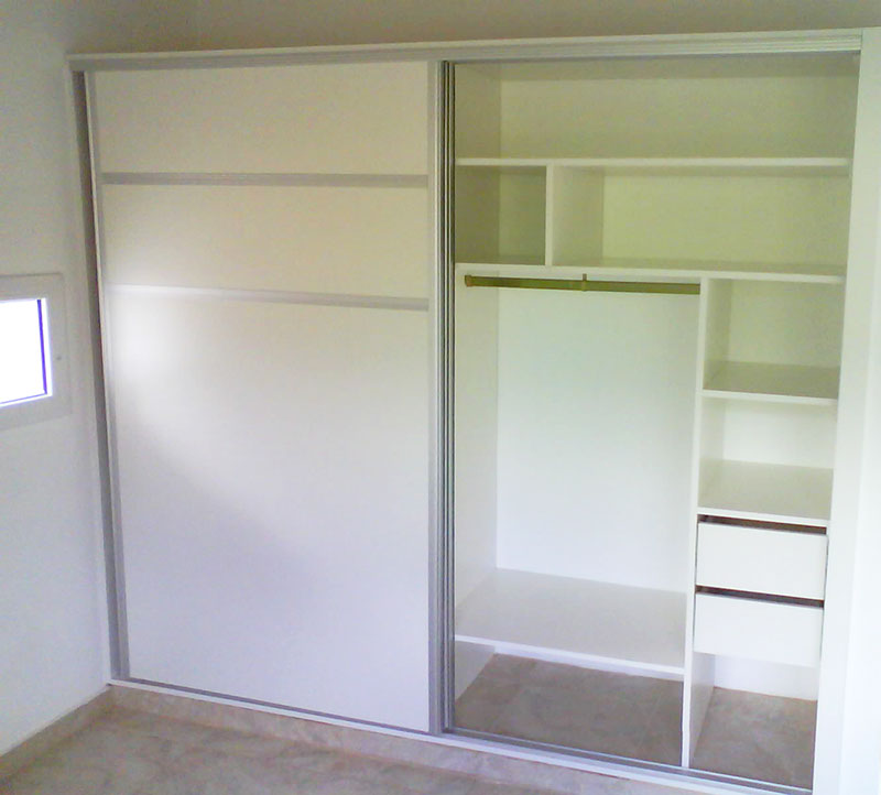 Los placards se realizan según las costumbres de cada usuario, se distribuyen los mismos sectores que los vestidores, se realizan en melamina con cantos de PVC, la gran diferencia es que llevan puertas, normalmente corredizas con sistema integral de aluminio de suave deslizamiento con placas en melaminas combinadas, vidrio o espejos.
